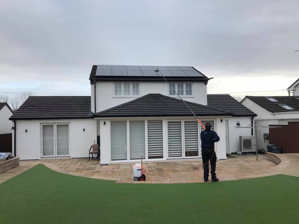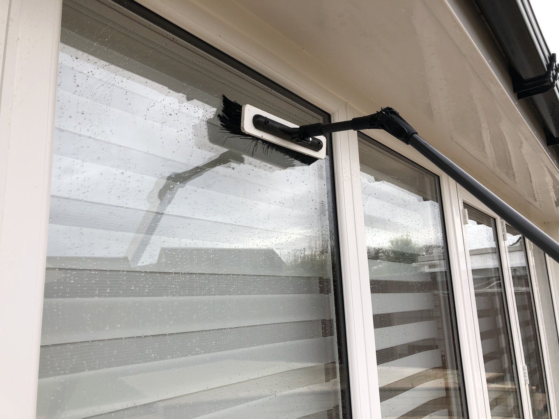 My first job operating as Wash and Mow carried out successfully, with one happy customer when completed. On this job I carried out a full clean of all windows, frames and sills, as well as the rear sun room bi-folding doors and windows, using the water fed pole system and pure water. The soffits and barge boards were also given a wash down, and the front and back doors were included free of charge for this customer. I was also asked to give the large array of solar panels a clean, which gave the opportunity to put my new 45 foot-reach, carbon-fibre pole through its paces (not to mention my stretching muscles, to manoeuvre the pole over the conservatory roof!!!). Altogether, a satisfying job completed, and then on to the next job. Give me a call if you’d like a quote to clean your windows.